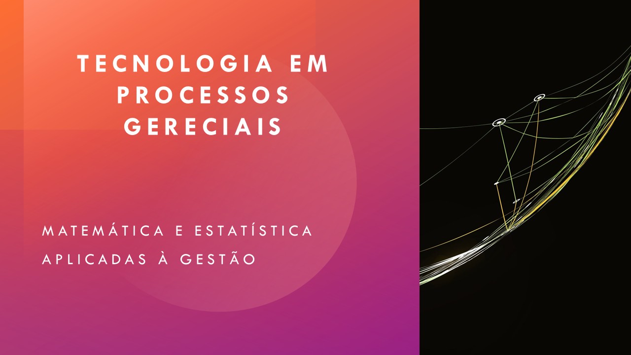 Seja bem-vindo à disciplina de Matemática Financeira e Estatística Aplicadas à Gestão, ferramentas importantes do curso de Tecnologia em Processos Gerenciais! Nesta matéria, você irá desenvolver habilidades essenciais para a análise e a tomada de decisões financeiras e gerenciais, utilizando conceitos matemáticos e estatísticos.
